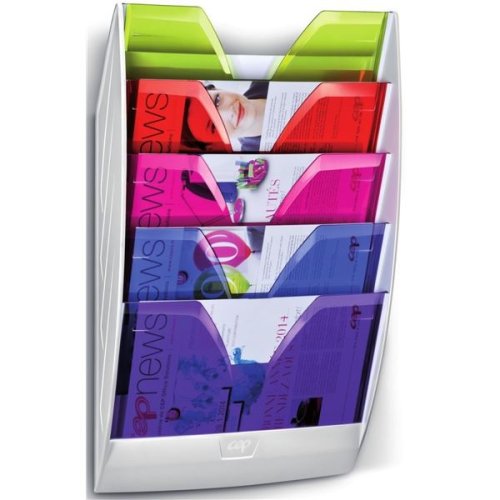 Nástěnný prezentační stojan s 5 transparentními přihrádkami v zářivých barvách Barevné rozlišení umožňuje třídění dle barev Recyklovatelný nárazuvzdorný polystyren Dodáváno včetně pevňovací sady Stojan …