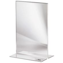 Univerzální stojan ve tvaru T pro informační a reklamní prezentaci Vysoce kvalitní akryl o tloušťce 1,8 mm dodává stojanu velmi vysokou úroveň stability Transparentní Rozměry: 10,5 x 15 cm