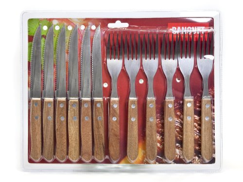Příbor steakový PARTY (6 + 6 ks) nerez, dřevěná rukojeť.