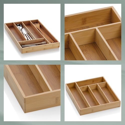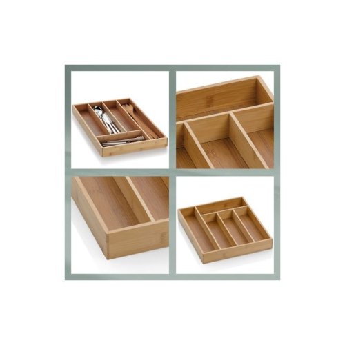 • materiál: přírodní bambusové dřevo- lehký, odolný materiál s dlouhou životností- délka: 30 cm- hloubka: 34 cm- výška: 5 cm- 5 přihrádek