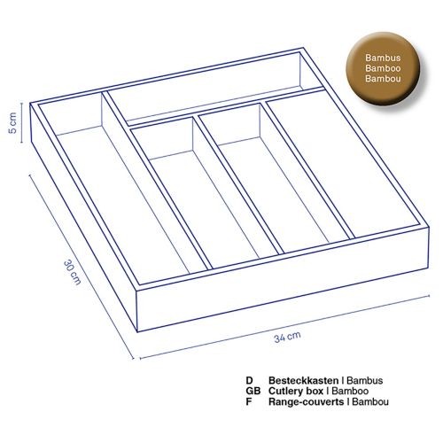 - materiál: přírodní bambusové dřevo- lehký, odolný materiál s dlouhou životností- délka: 30 cm- hloubka: 34 cm- výška: 5 cm- 5 přihrádek