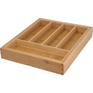 Vneste do své kuchyně řád i styl s tímto elegantním a ekologickým příborníkem z pravého bambusového dřeva. Jeho přirozený vzhled, jemná textura a teplý odstín dřeva promění obyčejnou zásuvku ve vkusně uspořádaný prostor.