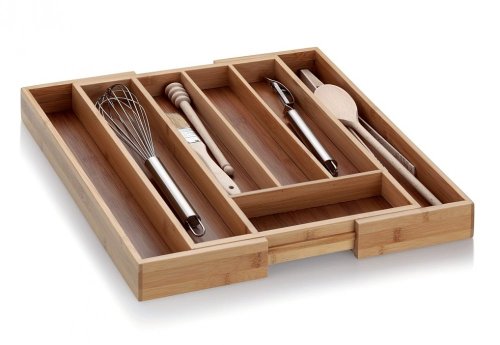 • materiál: přírodní bambusové dřevo- lehký, odolný materiál s dlouhou životností- rozkládací délka, dokonale přizpůsobíte vaší zásuvce- nastavitelná délka: 28,5 až 39 cm- hloubka: 33 cm- výška: 5 cm- 5 až 7 přihrádek