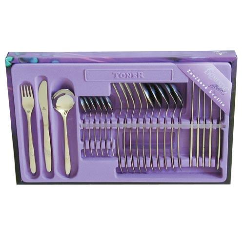 24 dílná sada obsahuje vidličky, nože, lžičky a lžíce. vyrobeno z kvalitní nerezi 18/10 mechanicky leštěno do vysokého lesku. Vhodné do myčky nádobí. Baleno v dárkové krabici. Český výrobce. EAN 8590159051876