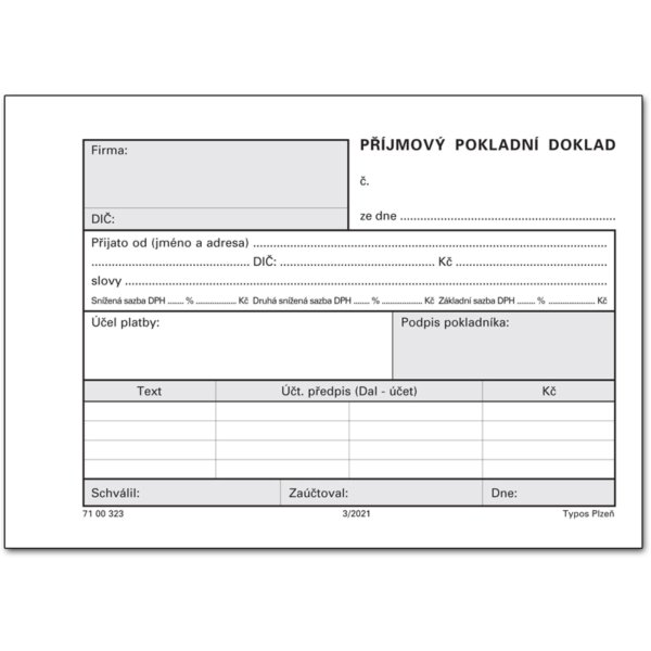 Příjmový pokladní doklad, číslovaný, 2x 50 listů