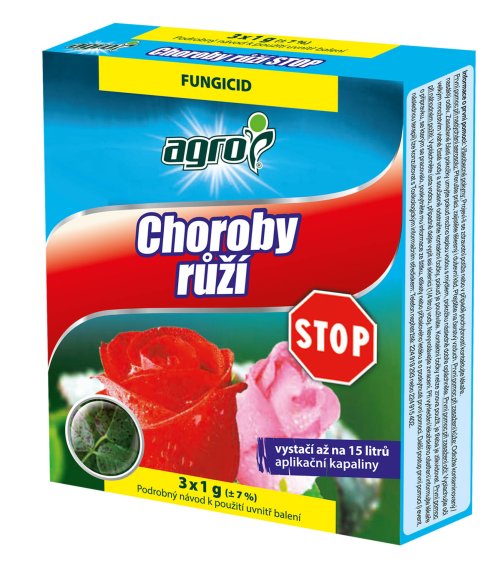 Trápí vás padlí a černá skvrnitost na listech růží? Přípravek Agro Choroby růží patří mezi širokospektrální preventivní léčebný fungicid, který chrání tyto okrasné květiny před houbovými chorobami. Použijete ho ovšem i na strupovitost a padlí jabloní a hrušní.