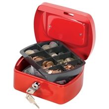 Vyrobena z lakované oceli s povrchem odolným proti poškrábání Každá pokladna je opatřena zámkovou vložkou ke které dodáváme 2 klíče Součástí balení je vyjímatelný mincovník s 8 oddíly Plastová rukojeť …