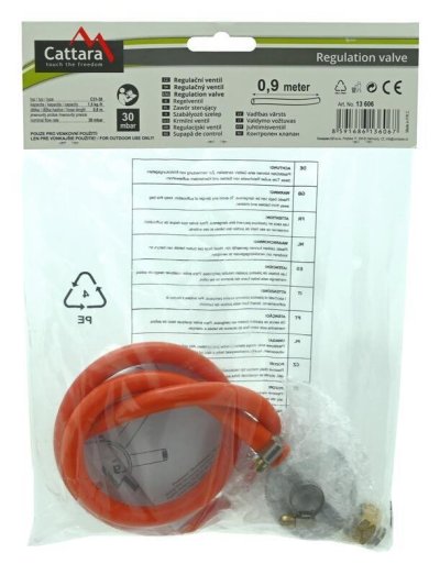Regulátor Cattara sám sníží tlak plynu a udržuje ho podle nastavené hodnoty. Využijete ho s plynovými vařiči. Na vstupu je vybavený převlečnou maticí W 21,8 x 1/14" L. Umožní vám připojení k ventilu. Na výstupu se nachází koncovka pro hadici na PB s vnitřní světlostí 8 mm nebo závitem G 1/4" L. Regulátor je určený k používání v zakrytém prostoru, aby nedošlo k ucpání vzduchového otvoru.