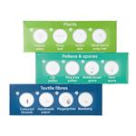 Všechny preparáty jsou rozděleny do tří skupin podle kategorií. Každé podložní sklo představuje jednu skupinu a obsahuje čtyři preparáty. Každý preparát je označen tak, aby bylo možné rychle najít ten, který chcete zkoumat. Tato sada je skvělým doplňkem pro jakýkoli biologický mikroskop se spodním osvětlením, včetně modelů pro děti. Preparáty lze používat s mikroskopy jakékoliv značky.