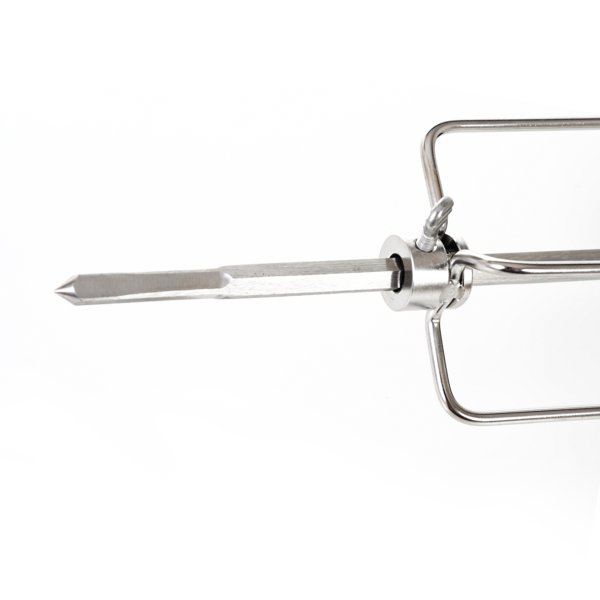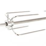 Grilovací jehla s motorem je vyrobena z nerezové oceli a z obou stran je opatřena čtyřmi jehlicemi s aretačními šrouby, díky kterým si můžete jehlice nastavit podle vlastní potřeby.
