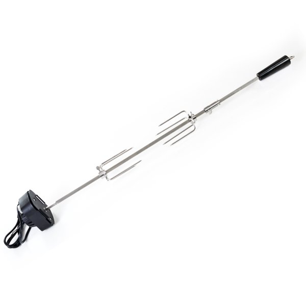 Z jedné strany je jehla opatřena odnímatelným plastovým držadlem, na kterém je praktické očko pro uchycení. Z druhé strany se nachází motorek v plastovém krytu, na kterém je umístěno tlačítko na zapínání / vypínání. Motorek s napětím 230 V jednoduše zapojíte do elektřiny pomocí kabelu v délce cca 125 cm. Motorek s jehlou otáčí rychlostí asi 2 otáčky za minutu, aby se připravovaný pokrm nepřipékal, ale pekl se rovnoměrně.