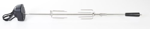 Z jedné strany je jehla opatřena odnímatelným plastovým držadlem, na kterém je praktické očko pro uchycení. Z druhé strany se nachází motorek v plastovém krytu, na kterém je umístěno tlačítko na zapínání / vypínání. Motorek s napětím 230 V jednoduše zapojíte do elektřiny pomocí kabelu v délce cca 125 cm. Motorek s jehlou otáčí rychlostí asi 2 otáčky za minutu, aby se připravovaný pokrm nepřipékal, ale pekl se rovnoměrně.