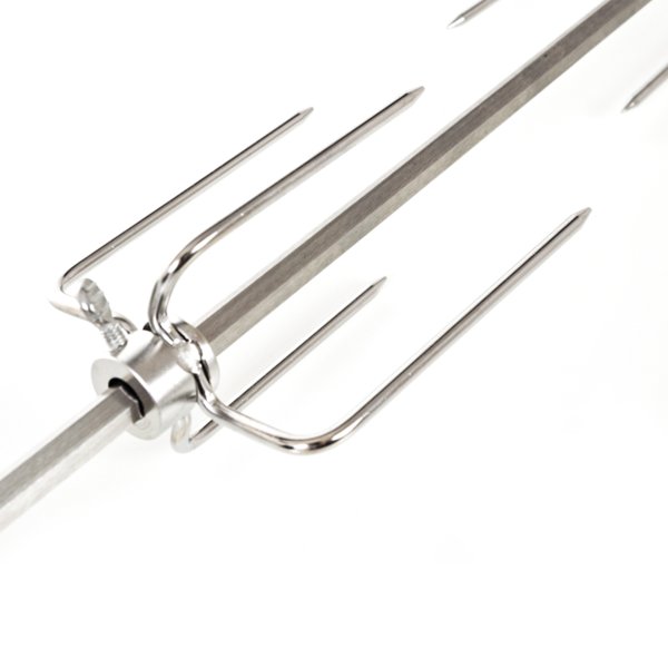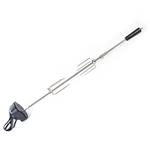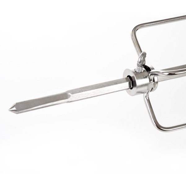Z jedné strany je jehla opatřena odnímatelným plastovým držadlem, na kterém je praktické očko pro uchycení. Z druhé strany se nachází motorek v plastovém krytu, na kterém je umístěno tlačítko na zapínání / vypínání. Motorek s napětím 230 V jednoduše zapojíte do elektřiny pomocí kabelu v délce cca 125 cm. Motorek s jehlou otáčí rychlostí asi 2 otáčky za minutu, aby se připravovaný pokrm nepřipékal, ale pekl se rovnoměrně.