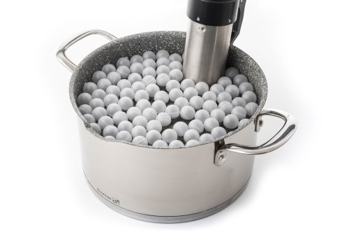 Ponorný sous-vide vařič totiž neumožňuje použití poklice, která by zabránila tepelným ztrátám a odpařování vody. Proto doporučujeme použití izolačních kuliček G21 – pokryjí hladinu vody v nádobě a zamezí úniku tepla. V balení najdete 100 kuliček o průměru 2 cm, které jsou vyrobeny z PP plastu. Jejich účelem je zadržet teplo z vodní lázně a zabránit tak ztrátám při sous-vide vaření.