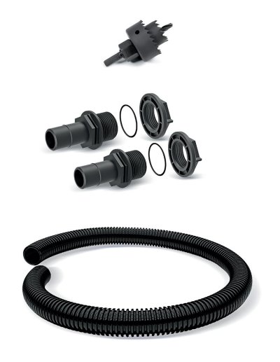 Sada příslušenství k sudům na dešťovou vodu ICANS8. Propojovací systém určený k propojení sudů na dešťovou vodu. Díky tomu vytvoříte systém spojených nádob a zvýšíte tak množství uložené dešťové vody. Univerzální produkt s jednoduchou a rychlou instalací. Připojovací systém určený k propojení 2 sudů na dešťovou vodu (distribuce vody ze sudu A do sudu B).