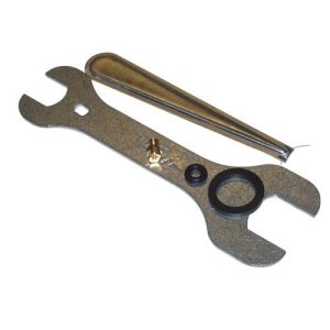 sada obsahuje: montážní klíč (12/17, 12/19), propichovací jehlu, O-kroužky (2,8 x 1,8 mm), těsnění (19,3 x 14 x 2 a 8 x 3 x 2 mm), sintr a trysky (0,18 a 0,20 mm)