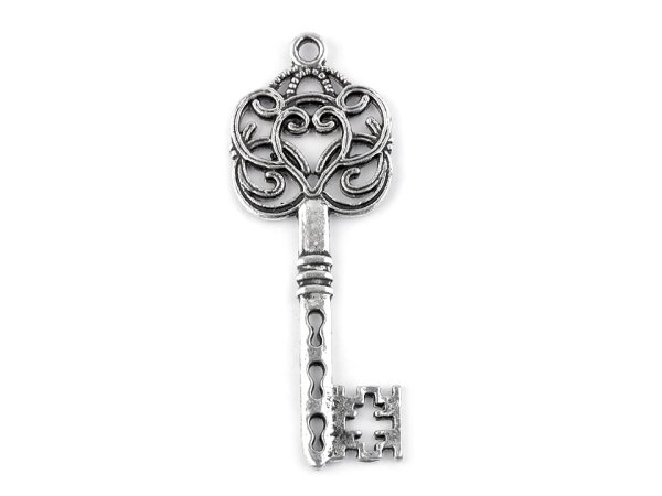 Kovový přívěsek starobylého klíče má mnoho způsobů použití. Je hojně využívaným symbolem při příležitosti svatby. Přívěsek má kvalitní zpracování, je velice propracovaný. Nahoře má umístěné očko k zavěšení. Klíč je oboustranný, z nemagnetického kovu.