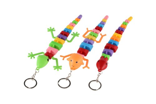 Parádní klíčenka nebo přívěsek na batoh ve tvaru ještěra. Po zmáčknutí tlačítka na obličeji začne v tlamě ještěra blikat. Ještěr je plastový s pohyblivým tělem, na baterie 2 x LR41, které jsou vložené. Rozměr ještěra: 28 cm Vhodné od 3 let