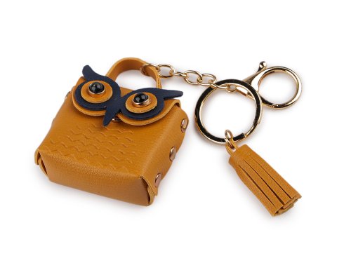 Přívěsek malé soví kabelky je nejen krásný, ale i velice praktický. Je jako opravdová malá kabelka. Je vyrobená z eko kůže, můžete si do ní schovat drobné mince, bonbon a podobné maličkosti na přežití. Klopa se zapíná na patent. Kabelka originálně dozdobí klíčenky, batohy, tašky apod. Přívěsek je zavěšený na řetízku, ke kterému je připojený plochý kroužek na klíče, otevírací karabina a střapec.