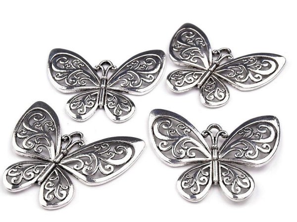 Filigránový přívěsek ve tvaru motýla využijete mnoha způsoby. Je jednostranný, z nemagnetického kovu.