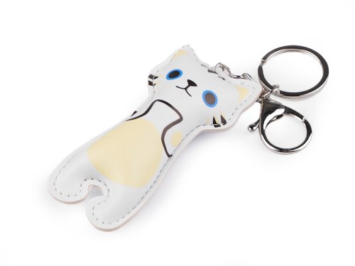 Přívěsek kočky je vyrobený z eko kůže, díky tomu má malou hmotnost. S oblibou se nosí na klíčích, batozích, taškách i kabelkách. Motiv kočky je na přední straně, přívěsek je jednostranný. Je zavěšený na řetízku, ke kterému je připojená otevírací karabina a plochý kroužek na klíče.