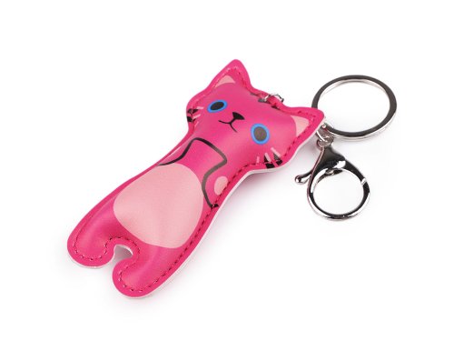 Přívěsek kočky je vyrobený z eko kůže, díky tomu má malou hmotnost. S oblibou se nosí na klíčích, batozích, taškách i kabelkách. Motiv kočky je na přední straně, přívěsek je jednostranný. Je zavěšený na řetízku, ke kterému je připojená otevírací karabina a plochý kroužek na klíče.