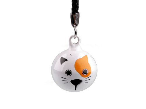 Přívěsek na klíče rolnička tučňák, panda, smajlík, myš, opice - bílá kočka