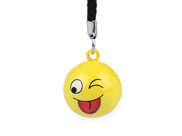 Přívěsek na klíče rolnička tučňák, panda, smajlík, myš, opice - žlutá smajlík