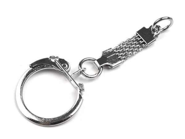 Přívěsek na klíče s karabinkou a poutkem. Délka činí 60 mm, kulatá karabinka má průměr 20 mm. Přívěsky jsou vyrobené z bižuterního kovu s galvanizací. Šířka otevřeného otvoru v karabině je 6,5 mm.