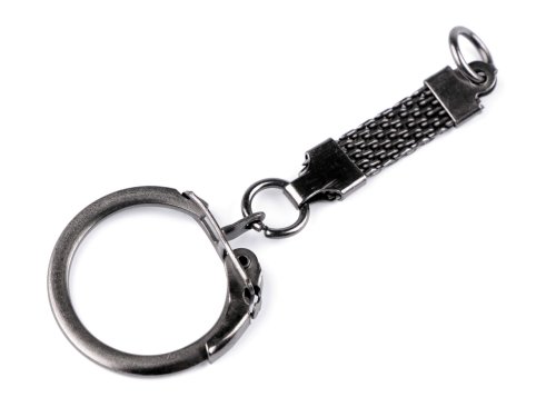 Přívěsek na klíče s karabinkou a poutkem. Délka činí 60 mm, kulatá karabinka má průměr 20 mm. Přívěsky jsou vyrobené z bižuterního kovu s galvanizací. Šířka otevřeného otvoru v karabině je 6,5 mm.