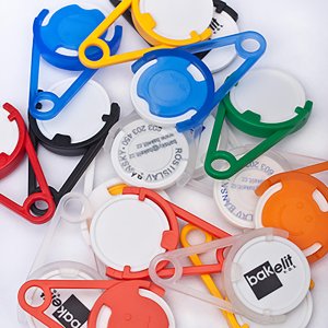 Přívěšek na klíče ŽETON se používá do nákupních vozíků.
