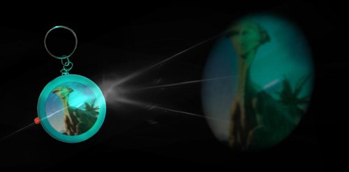 Projektor, který každý milovník dinosaurů a světýlek může nosit vždy po ruce, jako klíčenku. Zmáčkněte tlačítko na boku a celý se rozvítí, na zeď Vám bude promítat obrázek jednoho dinosaura. Velikost přívěsku: 4 cm Rozměr balení: 7 x 11 cm Vhodné pro děti od 3 let