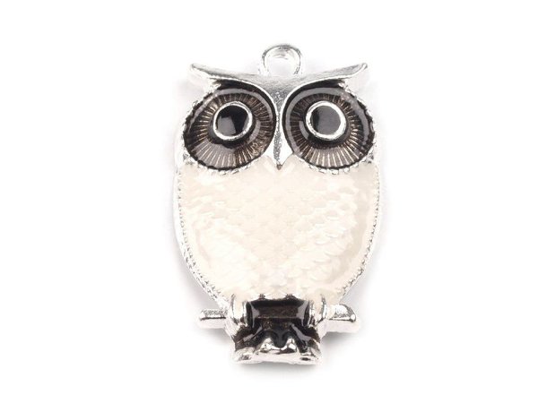 Propracovaný kovový přívěsek ve tvaru sovy dodá punc originality vašim [výrobkům.] Sova je jednostranná, barevně lakovaná. Má detailně vyražené oči i peří. Vyniká svěžími barevnými kombinacemi.