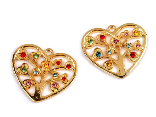 Kovový přívěsek ve tvaru srdce má uvnitř vkomponovaný strom života. Je ozdobený třpytivými broušenými kamínky. Využijete jej různými způsoby, je jednostranný, z nemagnetického kovu.