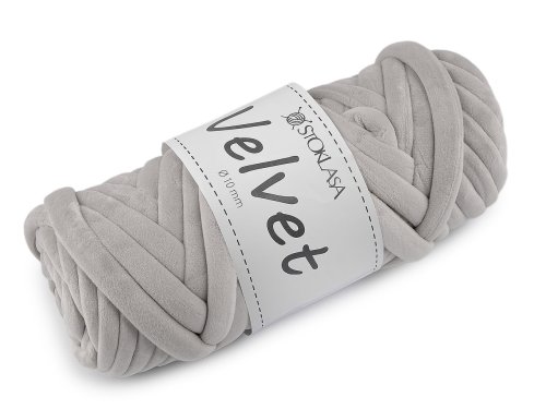 Silná příze Velvet je objemná, měkká a velmi příjemná na dotek. Tvoří ji tunýlek vyplněný vláknem. Dobře se vám s ní bude pracovat velkými jehlicemi nebo rukama. Příze se skvěle hodí na výrobu objemných dek, maxi přehozů na postel, polštářů a podobných doplňků. Je vhodná také na výrobu rukou a nohou k různým postavičkám (např. skřítkům, panenkám či andělům).