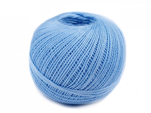 Háčkovací/pletací příze, tex50x3, 10 klubek (30g-200m) v krabičce. Čísla 50x3 znamenají: 50tex jsou číslování váhová (rozhodující je váha - hmotnost určité délky nitě). Zde platí pravidlo: Čím vyšší je číslo, tím hrubší je příze. Číslo 3 znamená že nit se skládá ze 3 jednoduchých nití. Tloušťka příze je cca 0,5 mm.