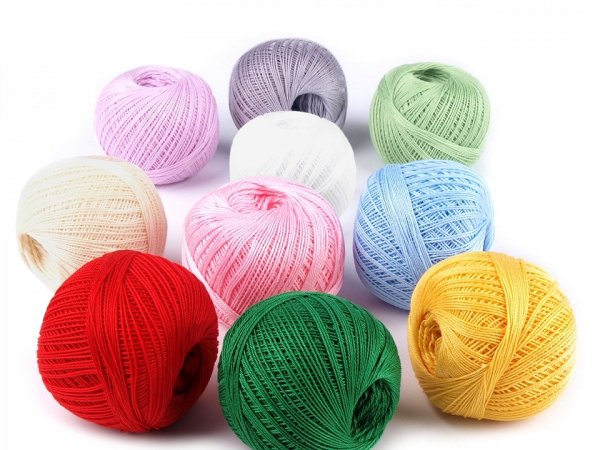 Háčkovací/pletací příze, tex50x3, 10 klubek (30g-200m) v krabičce. Čísla 50x3 znamenají: 50tex je číslování váhové (rozhodující je váha - hmotnost určité délky nitě). Zde platí pravidlo: Čím vyšší je číslo, tím hrubší je příze. Číslo 3 znamená, že nit se skládá ze 3 jednoduchých nití. Tloušťka příze je cca 0,5 mm.