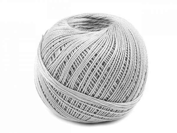 Háčkovací/pletací příze, tex50x3, 10 klubek (30g-200m) v krabičce. Čísla 50x3 znamenají: 50tex jsou číslování váhová (rozhodující je váha - hmotnost určité délky nitě). Zde platí pravidlo: Čím vyšší je číslo, tím hrubší je příze. Číslo 3 znamená že nit se skládá ze 3 jednoduchých nití. Tloušťka příze je cca 0,5 mm.