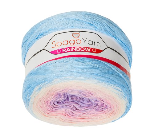 Příze SpagoYarn Rainbow materiál 55% Bavlna, 45% Polyacryl 250g / 1000 m praní na 40°C jemný postup sušit v sušičce nedoporučujeme žehlit nedoporučujeme doporučená velikost jehlic č. 2,5-3 mm Příze v …