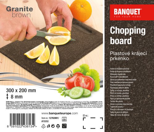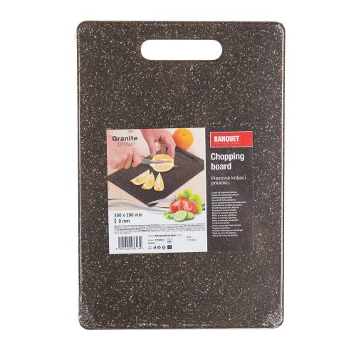 Krájecí plastové prkénko GRANITE Dark Brown, vyrobené z kvalitního plastu pro každodenní použití. Prkénko se snadno udržuje a je vhodné pro krájení s ocelovými i keramickými noži.
