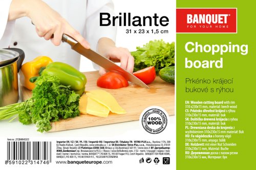 Dřevěné krájecí prkénko BANQUET Brillante s drážkou po obvodu prkénka, kvalitní zpracování.
