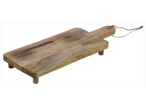 Velké hranaté prkénko z mangového dřeva se specifickou výraznou kresbou bude stylovým doplňkem na kuchyňský stůl. Použití i na zahradní párty, při grilování. Doladí tak hřejivou atmosféru Vašeho bydlení, třeba společně s ostatními kousky z mangového dřeva. Je možné jej i zavěsit za jutový provázek na rukojeti nebo opřít o zeď, bude tak stylovou dekorací doma i na chalupě. Dobře se přenáší díky vyvýšené desce.
