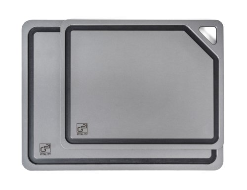 Univerzální prkénka EcoCut z biologicky rozložitelné celulózy spojují odolnost, šetrnost k ostří a moderní design. Snadno odolají i horkým hrncům, takže je můžete použít i jako podložku pod horké nádobí. Díky protiskluzové úpravě se prkénka při práci ani nehnou, zůstávají vždy pevně na místě. Praktická drážka po obvodu zachytí šťávy z masa i jiné tekutiny, díky tomu zůstane kuchyňská linka po krájení bez poskvrnky. V balení najdete rovnou 2 velikosti prkének (30 × 23,5 cm a 37 × 27,4 cm), které si zamilujete při přípravě masa, zeleniny, ovoce i bylinek.