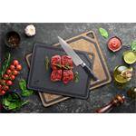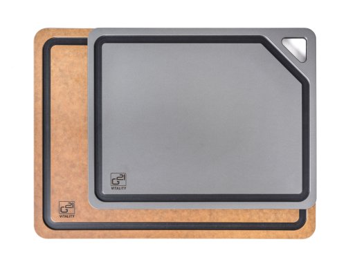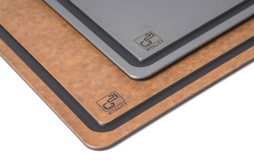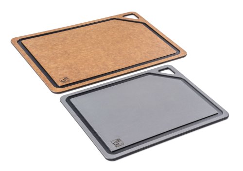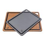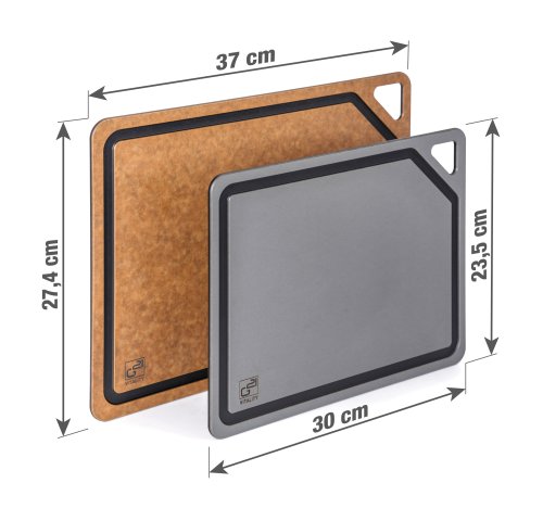 Univerzální prkénka EcoCut z biologicky rozložitelné celulózy spojují odolnost, šetrnost k ostří a moderní design. Snadno odolají i horkým hrncům, takže je můžete použít i jako podložku pod horké nádobí. Díky protiskluzové úpravě se prkénka při práci ani nehnou, zůstávají vždy pevně na místě. Praktická drážka po obvodu zachytí šťávy z masa i jiné tekutiny, díky tomu zůstane kuchyňská linka po krájení bez poskvrnky. V balení najdete rovnou 2 velikosti prkének (30 × 23,5 cm a 37 × 27,4 cm), které si zamilujete při přípravě masa, zeleniny, ovoce i bylinek.