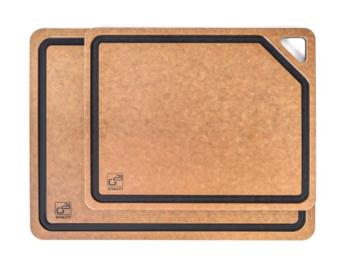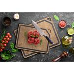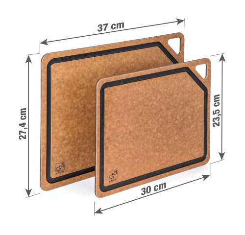 Univerzální prkénka EcoCut z biologicky rozložitelné celulózy spojují odolnost, šetrnost k ostří a moderní design. Snadno odolají i horkým hrncům, takže je můžete použít i jako podložku pod horké nádobí. Díky protiskluzové úpravě se prkénka při práci ani nehnou, zůstávají vždy pevně na místě. Praktická drážka po obvodu zachytí šťávy z masa i jiné tekutiny, díky tomu zůstane kuchyňská linka po krájení bez poskvrnky. V balení najdete rovnou 2 velikosti prkének (30 × 23,5 cm a 37 × 27,4 cm), které si zamilujete při přípravě masa, zeleniny, ovoce i bylinek.