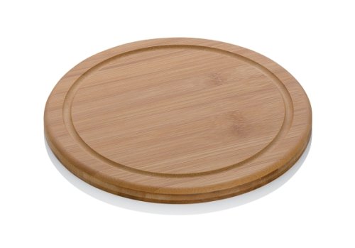 materiál: bambusové dřevo- velmi odolný přírodní materiál s lehkou údržbou- drážka zabraňuje stékání šťávy na pracovní desku- hladký a snadno čistitelný povrch- průměr: 25 cm- výška: 1,8 cm