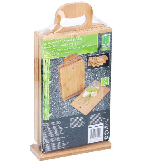 7dílná sada bambusových prkének na krájeníObsahuje stojanRozměry (DxŠxV): 220x140x5 mmIdeální do kuchyněRobustní a odolné