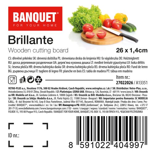 Dřevěné prkénko vyrobené z březového dřeva. Prkénko má kulatý tvar s drážkou po okraji, výška prkénka je 1,4 cm. Tradiční přírodní materiál pro přípravu potravin je určen pro ty, kdo dávají přednost dřevu před plastem.