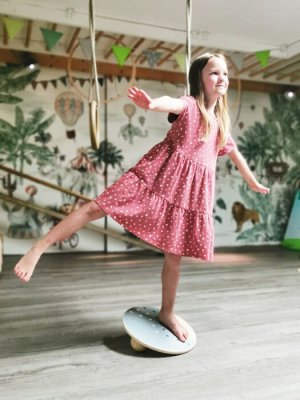 Kulaté prkno poskytuje dostatek místa pro stání. Vyrábí se z přírodního dřeva a díky jednoduchému designu a jemným barvám se hodí do každého dětského pokoje, obýváku či jiné místnosti. Pořiďte si k balančnímu prknu další produkty z řady Adventure a vytvořte gymnastickou tělocvičnu.