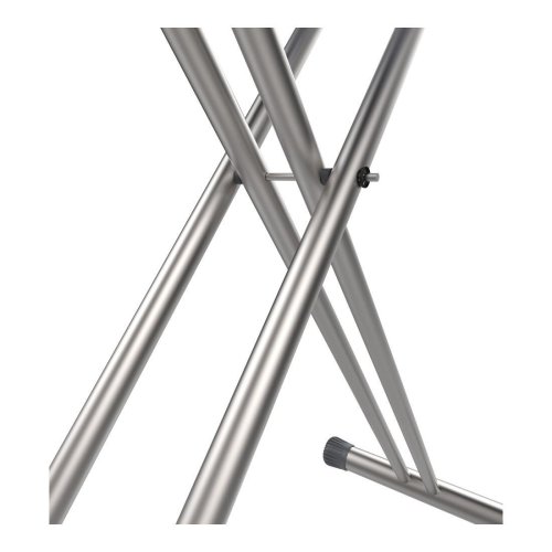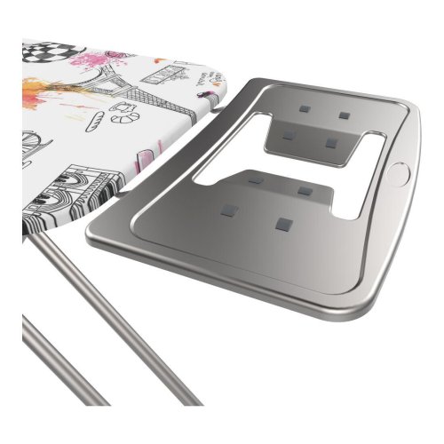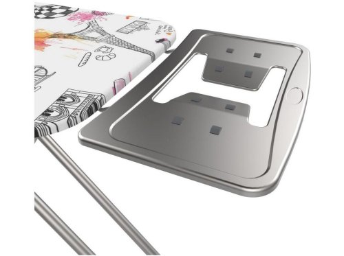 rozměry žehlicí plochy: 120 x 38 cm rozměry složeného prkna: 69 x 159,5 x 41 cm nastavitelná výška (minimální: 73 cm; maximální: 95 cm) kovová konstrukce ve stříbrné elektrostatické práškové barvě, prům. 25 - 38 mm speciální vrstva nástřiku proti korozi potah s pěnovým polstrováním o tloušťce 6 mm; materiál potahu: 50% polyester + 50% bavlna plastové protiskluzové koncovky odkládací plocha na žehličku se silikonovými podložkami